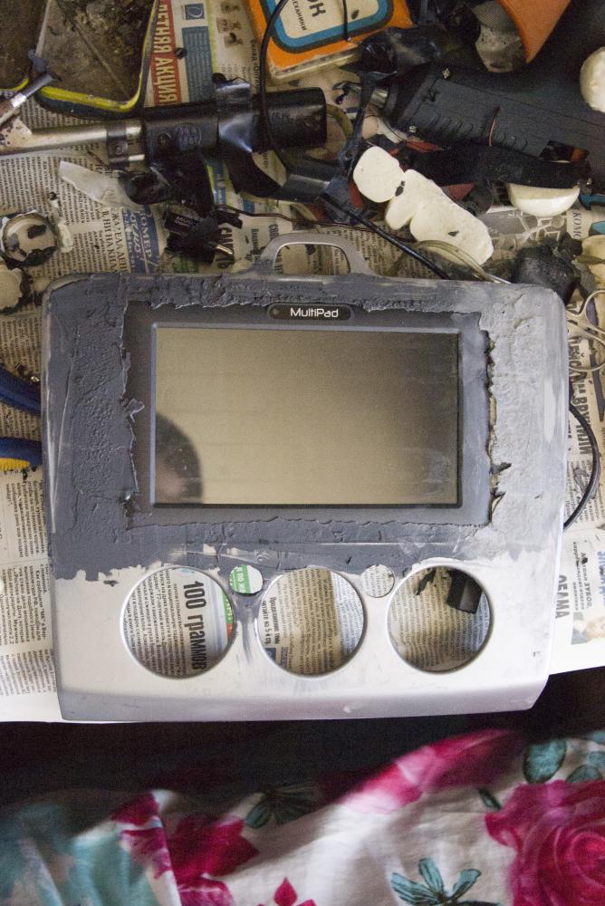 Сделал рут, установил прогу для регулировки громкости через статус-бар. Отрезал шнурок от родного адаптера 5V 2A: Купил зарядку в прикуриватель на 5V 3А: Разломал ее корпус и спаял автозарядку. Рядом с разъемом питания указана его полярность. Затем разобрал планшет. Для этого нужно отщелкнуть защелки по периметру задней крышки и снять ее: Отклеить АКБ, отвести его в сторону, отклетить шлейф камеры от экрана, открутить все винты и перевернуть плату. Увидим такую картину: Вывел клавиши включения и увеличения, уменьшения громкости посредством проводов от шлейфа IDE. Прожег в задней крышке отверстие паяльником и продел провода: Кнопки сами вынул, т.к. они на верхнем торце девайса (чтобы небыло случайных нажатий). Хочу его расположить максимально высоко. Микрофон в стоке выведен на торец. Я его повернул и прожег отверстие раскаленной иглой, чтобы он стал на передней части планшета. У меня есть покоцанная рамка. Прикинул, как девайс будет в ней расположен. Затем вставил в планшет USB-otg, аудио-кабель, кабель питания и приклеил верхний и нижний торцы к рамке термопистолетом. Пустоты слева и справа запенил. Лишнее срезал, начал шпатлевать. Сначала формируем поверхность и работаем грубой шкуркой: Затем исправляем косячки: Тут рамка загрунтована двумя слоями прозрачного грунта по пластику: Грунтуем обычным грунтом с перекрытием 70%, чтобы небыло подтеков: Грунтуем, сушим, шкурим 320-ой шкуркой: Подбирал цвет краски по кнопке обогрева: Красим с перекрытием 70%: Второй слой - уже с полным перекрытием: Не без косяков, но за эти 2 недели шпатлевания и кнопка обогрева получила первые коцки. Так что сойдет! Еще слой базы, потом слой краски на увеличенном расстоянии от детали и лак: Последний раз редактировалось Scalpel; 24.04.2013 в 14:18. |