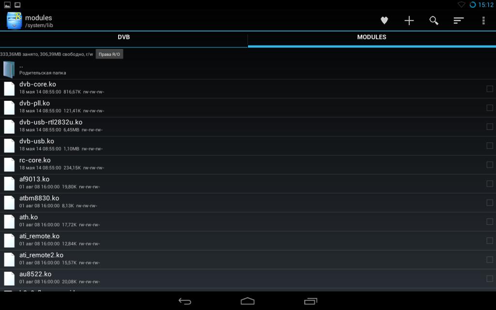 2) затем закинул скрипт startdvb и модули (dvb-core.ko, dvb-pll.ko, rc-core.ko, dvb-usb.ko, dvb-usb-rtl2832u.ko) в папку dev/dvb