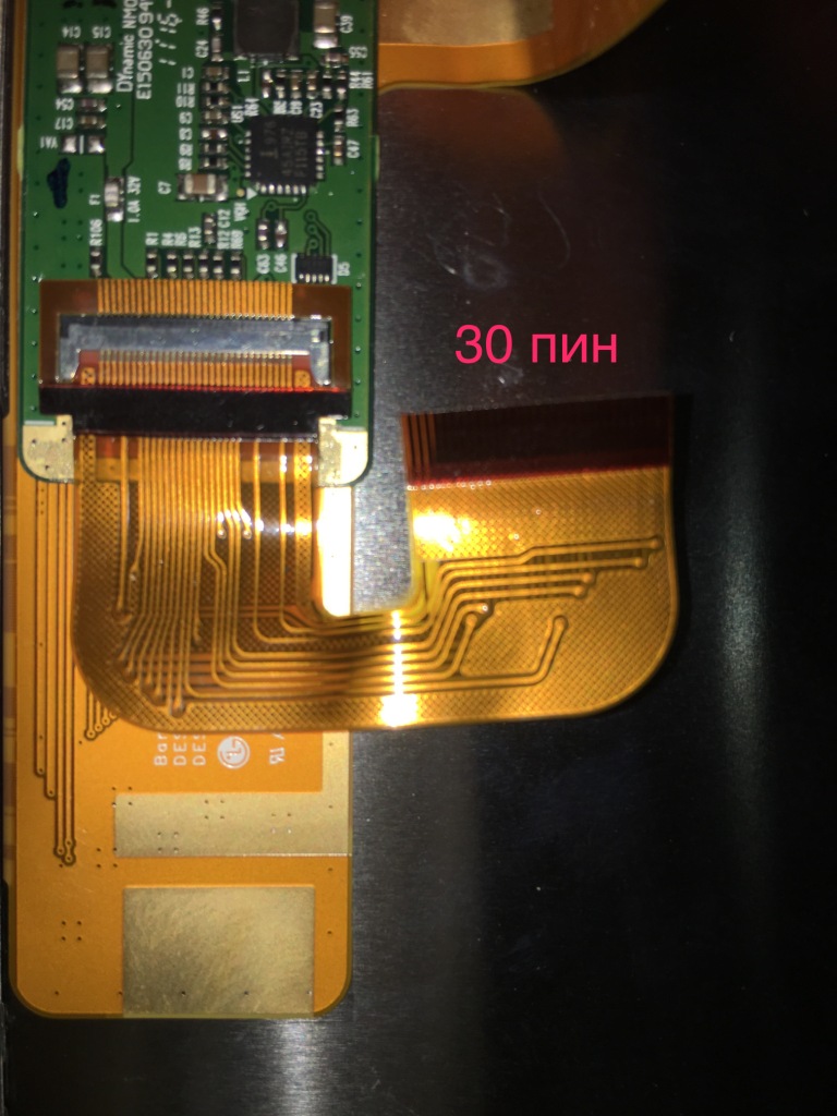 Ситуация следующая: Насколько я понимаю, от самой матрицы идет шлейф, который имеет все 50-пин, входит в плату, далее на "материнку" планшета идет 30-пиновый разъем со шлейфом. Также добрался до тача, он имеет 30-пиновый шлейф, но никаких иных обозначений кроме цифр 7087 не имеет. PS. Один из продавцов скалеров сказал что на данный дисплей я скалер вероятнее всего не найду(((( Прикладываю фото 50-пин от матрицы и далее 30-пин от платы |