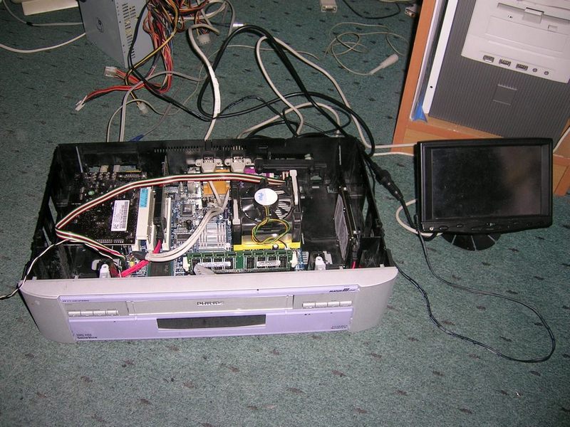 M/B GigaByte 8I845GVM-RZ HDD 2.5 Toshiba 60 Gb RAM 512 Mb Sata controller 3Data Sound Blaster Live 5.1 и захотелось что-то новенького себе в машину, запихнул железки в видеомагнитофон, установил усилитель Hifonics Zeus ZX4400, колоночки Hertz HSK165 и сабвуфер Alpine SWS-1242D и пока жду блока питания, дома компьютер гоняю с помощью мониторчика Prology, а в машине слушаю музыку от штатной головы с выпаянными линейными выходами.. |