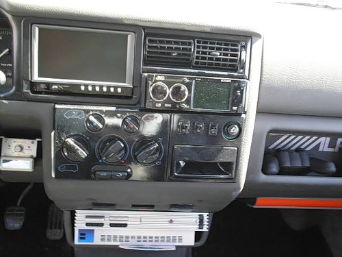 ИМХО монитор спереди 10" надо ставить. а комп под водительское сиденье, где доп АКБ стоит. А на задний салон вешать откидной 15-17" сделанный скажем из мертвого ноута.