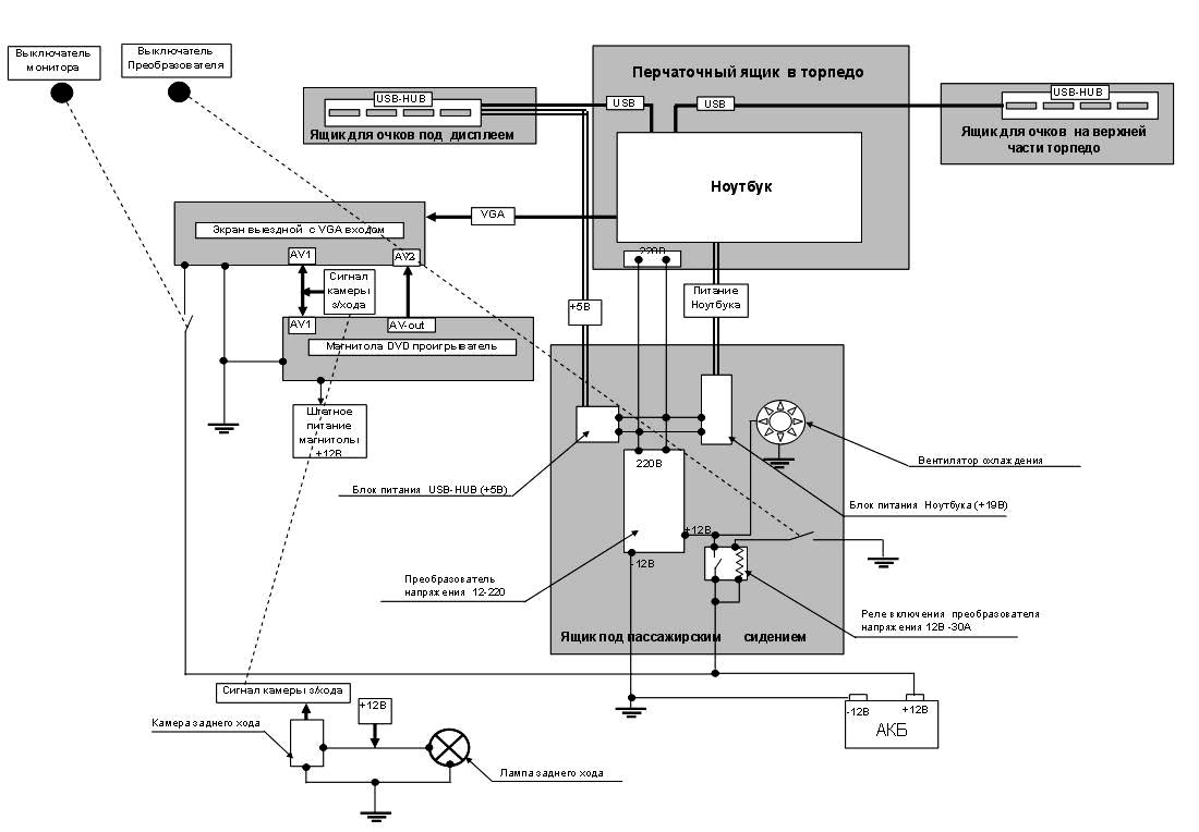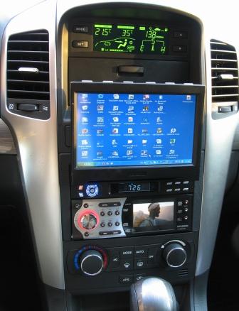 Итак. Шевроле Каптива 2.4 литра. Новая :-) Самое интересное, что в корейских вариантах она уже идет с 7 дюймовым монитором,GPS и т.п. А нам подсовывают ящички :-( Выкладываю фотки и схему. Если будут вопросы- пишите:-) Итак- Комп- вариант 1 - Flybook ноут с нерабочей матрицей в бардачке с питанием от преобразователя бортовой сети. GPS - USB головка на 3-м серфе, Вместо штатной магнитолы двудиновой- ДВД проигрыватель Хюндай с экраном 3 дюйма и выходом на 7 дюймовый 1-din выездной монитор с VGA входом и 2-мя видеовходами . Пожалуй и все... рассказывать о функционале думаю не надо.. все хорошо работает. Инет подключен через 3G оператора CDMA- дает реально до 450 кбит.... ну и камера заднего хода выведена параллельно на два монитора. В верхний ящичек вывел USB хаб для всяких яких прибамбасов. Вот и все... Последний раз редактировалось Stellar; 14.12.2007 в 23:09. |