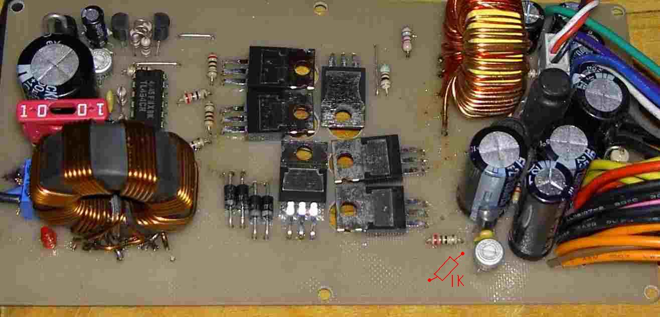 Вот: 1 куда делся резистор на 1к - на схеме есть а на рисунке он где? 2 разве на печатке есть такое соединение как на схеме, на печатке от Сергея R 14 соединен с С4 и второй ногой TL494? или я ошибся ? Извиняюсь если уже об этом спрашивали. |
