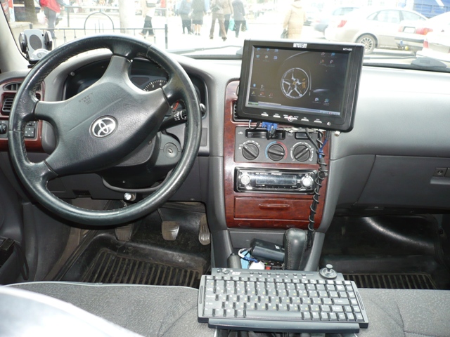 Хотелось бы добавить что проект Toyota Avensis- совместная работа двух человек- нордман и Stretch. 1. Так теперь выглядет рабочее место водителя: 2. Системник весьма удачно вписался в багажник. с креплением мудрить не пришлось. хватило одной стяжки + благодаря размерам оказался зажат под задней полкой: 3. Здесь все временные решения. Так сказать до поступления денежных средств. беспроводная клавиатура, инвертор 12-220V Neodrive 400Вт. (надо сказать при простое автомобиля менее 1 часа его хватает для устойчивой работы карпутера.) в дальнейшем планируется заменить схему с инвертором на ИБП Лебедева и добавить к клавиатуре трекбол или нарульный ПДУ 4. Монитор Mystery MTV-920 9" Слегка громоздкий но тем не менее... Стоимость всего 5600р. Крепление позволило не корежить панель. ( я не собираюсь ездить на этом авто вечно, поэтому при продаже хотелось бы все снять не оставив видимых повреждений.) доступ к кнопкам управления остался достаточно свободным. 5. Навигация осуществляется посредством Bluetooth GPS приемника One-XT BT-385i и программ City Guide 2.2 и Russa for Windows Карпутер как и ремонт в квартире: его можно приостановить но завершить нельзя никогда. Последний раз редактировалось нордман; 23.09.2008 в 18:18. |