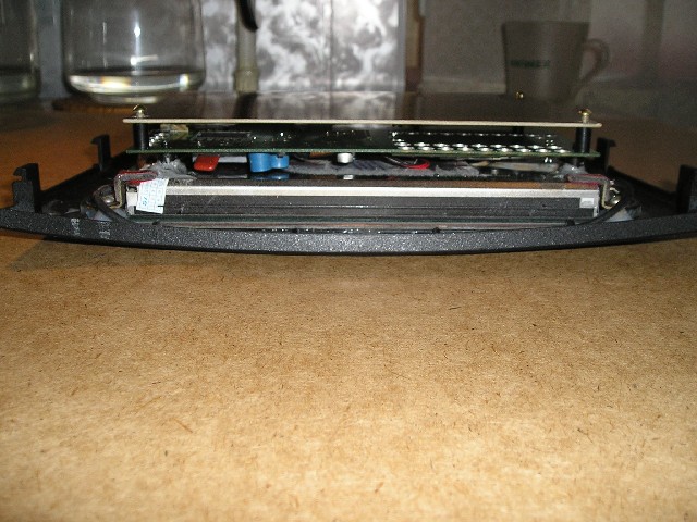 Первый, и самый трудный, на мой взгляд, этап - инсталляция монитора, и в том числе изготовление новой рамки. Первоначально консоль, где располагалось радио и предполагалось вместо него установить монитор, выглядела вот так. Для творчества, за основу была взята штатная рамка. Для ее переделки, чтобы авто не выглядело раздетым, так как предполагал, что этот этап сильно затянется, купил новую штатную рамку и начал ее подстраивать под монитор PCM-800, который предварительно приобрел. Сначала определил рабочие границы видимой части экрана и внешние установочные размеры матрицы, для чего, соответственно, пришлось разобрать монитор на фрагменты. По полученным размерам вырезал из стеклотекстолита плоскую рамку с внешними размерами по габаритам матрицы и с внутренними размерами соответственно по видимой границе. Изготовленную рамку вклеил в штатную на ПОКСИПОЛ, для чего по ходу дела пришлось немного попилить штатную рамку, в основном внутренние ребра жесткости, которые мешали изготовленной рамке лечь в одной плоскости. Главная задача состояла в правильной центровке этой рамки относительно штатной, так как в противном случае могли возникнуть проблемы с установкой монитора, поскольку внешние габариты матрицы оказались тютелька в тютельку по размерам гнезда консоли в машине (а пилить консоль я был-бы не готов). Далее следовал малоприятный и малоинтересный этап многократной шпаклевки, зашкурки и покраски рамки из баллончика. Ровной матовой поверхности не получилось, как ни старался. Пришлось остановиться на шагреневой структуре поверхности, которая получилась непроизвольно (из серии – захочешь так сделать, еще раз не получится). Блок кнопок монитора пришлось порезать на части и скомпоновать по новому, слева и справа от монитора, так как штатное их расположение было внизу, а возможности поставить их так-же не было из-за недостаточности вертикального пространства в консоли. Туда-же поставил и кнопку включения компьютера и индикацию состояния. После этого все было уже просто. Рискнул приклеить матрицу к рамке на двухсторонний скотч для надежности при тряске. Дополнительно поджал скобками. Все прошло успешно! Тач работает нормально. Плату прикрутил через резьбовые втулки, приклеенные ПОКСИПОЛОМ к основной штатной рамке и закрыл весь этот пирог панелью из стеклотекстолита на всякий случай для защиты платы от возможного контакта с металлическими деталями. Получился вот такой сэндвич. На него и фильтр по питанию приклеил в коробочке. Осталось навести последние штрихи в смысле декорации и вот готовый продукт для вживления в машину. И вот он в машине. Продолжение следует.