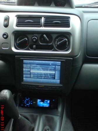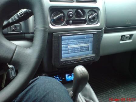 Вот решил показать, что у меня получается. Началось все с того, что я увидел на Nissan Pathfinder монитор с автоматическим выводом камеры заднего вида при включении заднего хода (зацепило, захотелось). По случаю купил камеру Mystery MVR-1S (лежала пылилась около 2 месяцев). Долго думал о покупке 2 динового головного устройства, но купил 1 диновый JVC KD-AVX11 так уж карта легла. У данной магнитолы есть небольшой монитор, куча входов, выходов и т.п. Поездил, поездил, естественно понял то, что названо монитором у этой магнитолы это только информационный дисплей и почти ни чего толкового в нем нет, решил - нужно искать какой-нибудь монитор. Искал в Интернете долго и упорно, смотрел в сторону навигаторов с AV входом и о чудо наткнулся на этот сайт и понял, что вот оно мое решение и даже более функциональное, чем я хотел. И началось. купил: 1. монитор Lilliput GL629-70NP/C/T 2. блок питания для ноутбука автомобильный на 150 вт 3. GPS приемник GLOBAL SAT BU-353 4. удалось найти ноутбук довольно неплохой и бесплатный (точнее обошелся он мне в 8 литров бензина, съездить его забрать) 5. микрофон 6. провода всякие 7. хаб и Bluetooth передатчик были куплены давно и активно использовались. Делал все как на крупных заводах, начинал с конструирования макетов из фанеры в натуральную величину. Так как в моем автомобиле все оборудование сделано как отдельные компоненты принял решение не заморачиваться с созданием рамки заподлицо. После примерки и как правило ночных размышлений рамку сделал из оргстекла и обклеил ее кожей в цвет панели (правда на фотках почему то цвет не совпадает) Все провода спрятаны за монитором и в туннеле пола. Звук пущен через магнитолу, уж очень мне она нравится, как звучит. Выглядит это все вот так: |