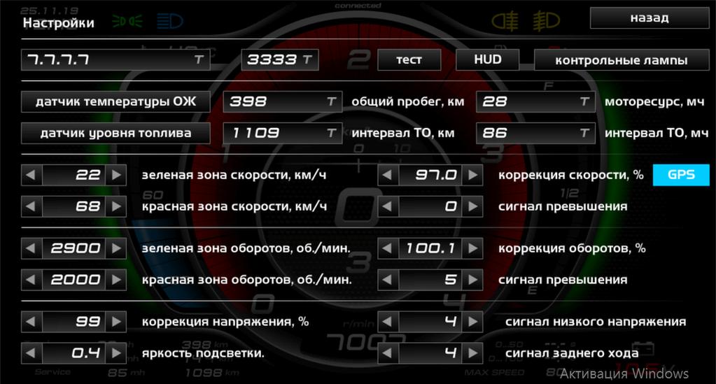 - Настраиваемые пороги оборотов с цветовой индикацией.