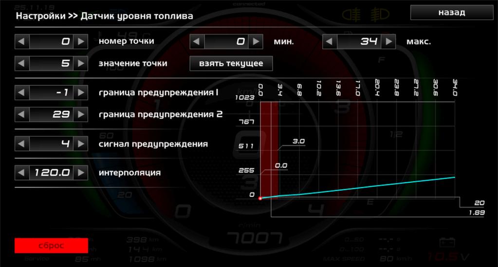 Venator Lite4 - свободная для распостранения, адаптированная для использования на устройствах Android с сенсорным вводом (смартфоны, планшеты), совместимая с Android 9. Приложение + скетч + лаунчер - https://drive.google.com/drive/folde...vw?usp=sharing * Один скин, язык интерфейса - русский. * Отображение скорости автомобиля с возможностью корректировки. - Источник данных - импульсный датчик скорости либо встроенный GPS. - Настраиваемые пороги скорости с цветовой индикацией. - Несколько вариантов звукового (включая голосовое) оповещения небезопасной скорости. * Отображение оборотов мотора с возможностью корректировки. - Настраиваемый максимум шкалы тахометра 4000...16000 об./мин. - Настраиваемые пороги оборотов с цветовой индикацией. - Несколько вариантов звукового (включая голосовое) оповещения критических оборотов. * Отображение напряжения АКБ с возможностью корректировки - Цветовая индикация при падении напряжения ниже 10.5 В - Несколько вариантов звукового оповещения при падении напряжения ниже 10.5 В * Отображение включения заднего хода со звуковым оповещением * Отображение уровня топлива - Калибровка датчика уровня топлива. - Настраиваемый порог и цветовая индикация низкого уровня топлива. - Несколько вариантов звукового (включая голосовое) оповещения низкого уровня топлива. * Отображение температуры охлаждающей жидкости - Калибровка датчика температуры охлаждающей жидкости. - Настраиваемый порог и цветовая индикация высокой температуры охлаждающей жидкости. - Несколько вариантов звукового (включая голосовое) оповещения высокой температуры охлаждающей жидкости. * Отображение температуры (отключаемое) с одного датчика типа DS18B20 (наружная температура или температура салона) * Отображение времени и даты (отключаемое) * Индикация включеной передачи КПП/АКПП * 16 настраиваемых контрольных ламп - выбор одного или нескольких входов включения контрольной лампы. - выбор пиктограммы контрольной лампы (43 варианта). - звукового оповещения при включении контрольной лампы (4 варианта). * Настраиваемый счетчик общего пробега * Сбрасываемый счетчик суточного пробега. Сброс счетчика суточного пробега тапом по зоне одометра или сигналом с блока сбора данных. * Настраиваемый обратный счетчик сервисного интервала пробега * Настраиваемый счетчик общего ресурса моточасов ( 1 мото час = 1 час * (Обороты двигателя / 1000) ) * Сбрасываемый счетчик суточного ресурса моточасов. Сброс счетчика суточного ресурса тапом по зоне счетчика. * Настраиваемый обратный счетчик сервисного ресурса моточасов * Настраиваемая яркость подсветки экрана при включении габаритных огней. * Режим HUD - проэкция экрана на отражающую поверхность. * Замер разгона 0…50 и 0…100 км/ч. Замер максимальной скорости. - Замер разгона и максимальной скорости начинается после начала движения. - Результаты замеров сохраняются до начала нового замера. * Настройка IP адреса, номера порта, пробега и сервисных интервалов осуществляются с виртуальной клавиатуры. В поле ввода вносится соответствующее значение, по нажатию кнопки рядом с полем — значение запоминается. Кроме альтернативного IP в панели настроек, для подключения также используются IP адреса по умолчанию. 192.168.4.1 для ESP 82666 (Wifi подключение) 192.168.16.254 для HLK-RM04 (Wifi подключение) 127.0.0.1 для localhost (USB подключение при использовании программного шлюза Ser2Net, serportAuto) При подключении в первую очеред