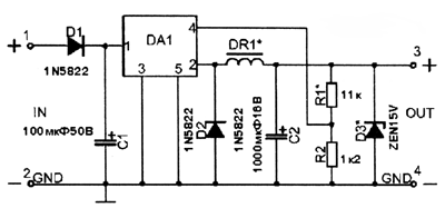 дальше, всеголишь подбором резисторов R1,R2 выставить нужное напряжение на выходе.