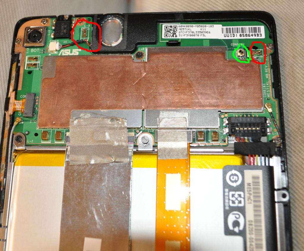 Мат плата NEXUS 7 2013 LTE. Фото из гугла. Есть предположение, что это разъём для подключения внешней GSM (LTE) антенны.