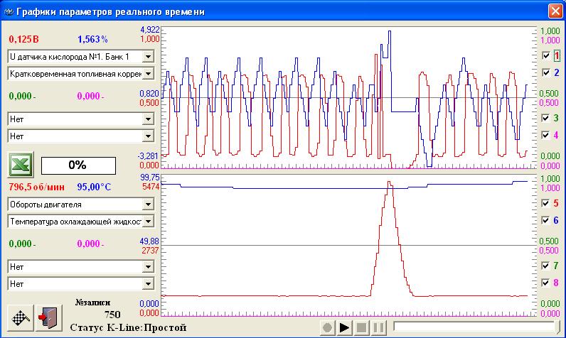 Для Striker: ...... нижний порог напряжения составляет около 0,1 В. В теории если это напряжение менее 0,2 В - то датчик можно считать неисправным - раньше придерживался именно такого мнения, а вот сейчас нет. Либо это в программе что-то не так, либо у всех машин кисл.датчики на грани смерти, либо чья-то "теория" ошибочна......