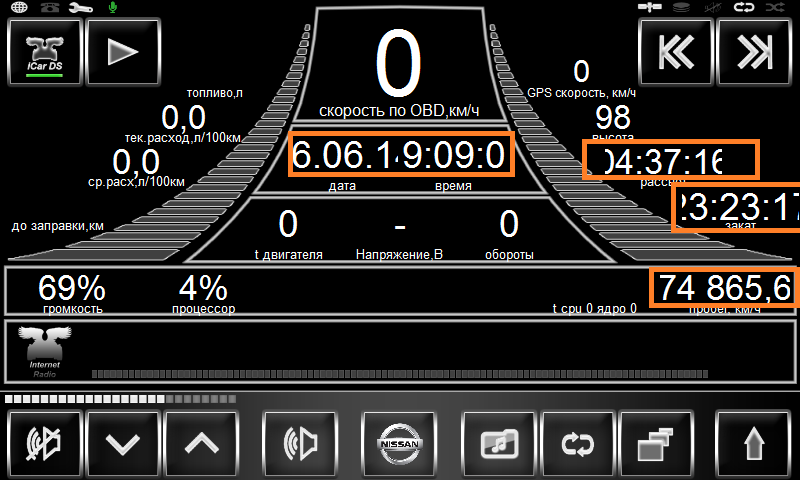Шрифты подгонялись под все популярные разрешения мониторов. Просто зайди в iCarDSConfig и задай формат даты без года, а формат времени без секунд и всё влезет.