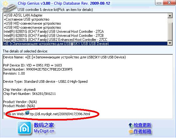 Кстати, ChipGenius дает ссылку на утилиту для тестируемой флешки.