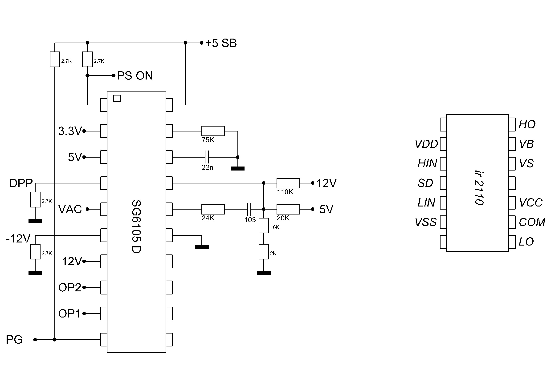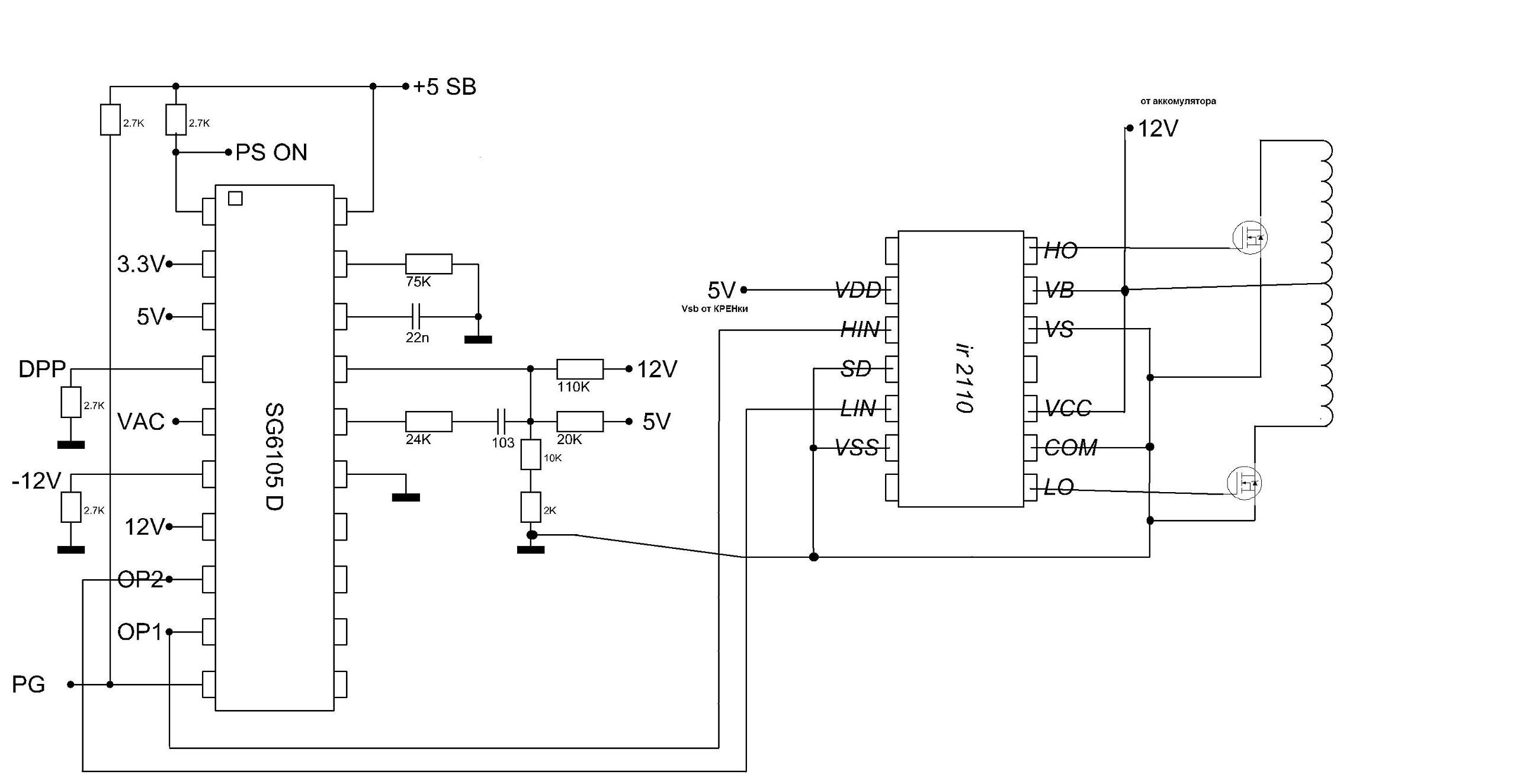 Вот накидал примерно как надо подключить sg6105 к ir2110