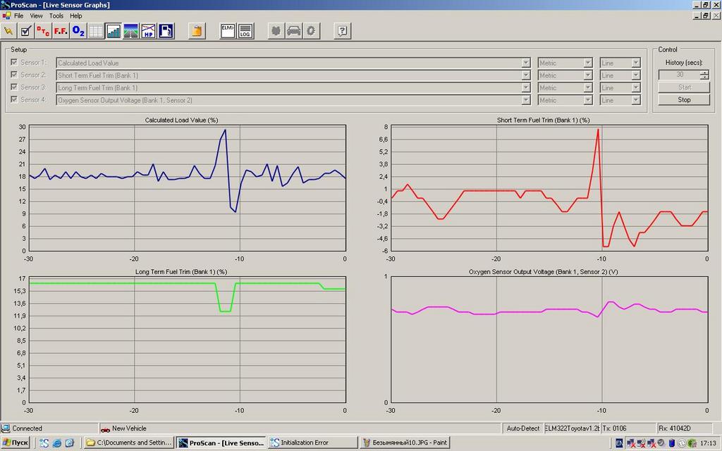Я тоже спаял сканер по COM порту. Все работает, только хочется время работы форсунок посмотреть, а ни одна из поверенных мною программ не показывает. |