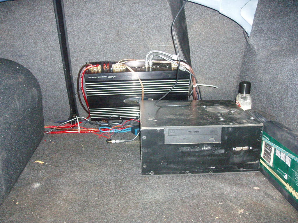 от АКБ проводом 4Ga до багажника провел "+" и проводом 8Ga провел "-" (провел по левому порогу), в багажнике уже развел на потребители проводами 8Ga: на усилитель, сабвуфер, компьютер, монитор.