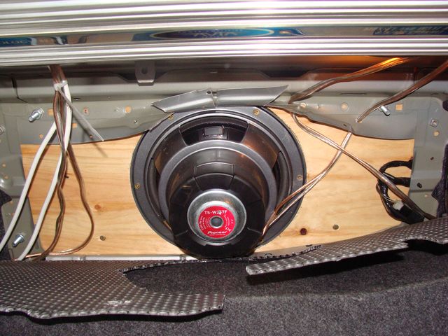 фанерных листов, по 20 мм каждая и вставлен за задним сиденьем ,проводку делал силиконовым кабелем 2,5 квадрата ,силовые кабеля отдельно плюс и минус по 35 кв каждный ,были брошены по лонжерону ,прихвачены стальными стяжками к топливным трубкам ,естественно каждый в своей стальной оболочке, для саба поставил кросовер с кетайской головой все это вроде как работало ,но чего-то не хватало |