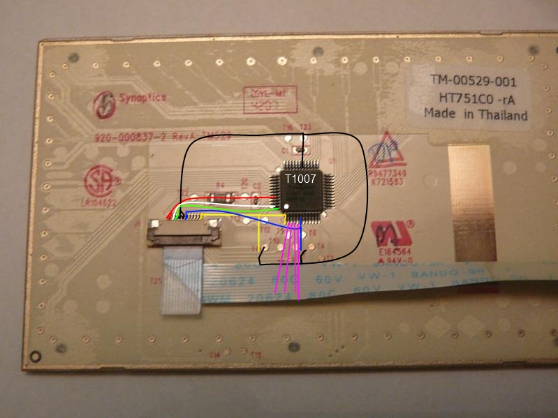 замыкание оставшихся на массу ничего не дает .скрол итак работает но когда мыш находится на полосе прокрутки подсветка моргнула при подключении .думаю все заработает с тошибовскими дровами
