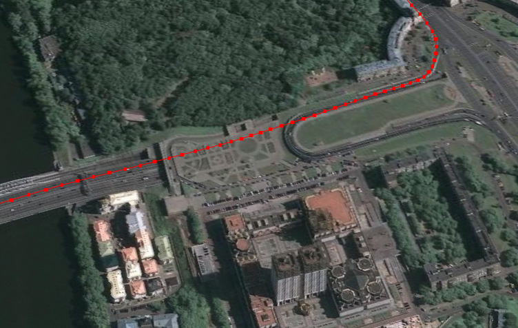 UPD 18.октября.2010 Еще один трек через два тоннеля ТТК. После Гагаринского заметен скачок вправо при приеме спутников на выезде из тоннеля. Отклонение составляет 6м на километр, т.е. 0,6%, во втором тоннеле точность трека выше погрешностей GPS. Приложил файл GoogleEarth TTK03.zip