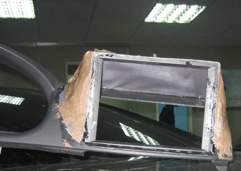 Но у меня была возможность оставить больше , поэтому была вживлина в торпеду морда монитора , а потом в эту морду изнутри вклеили саму матрицу.