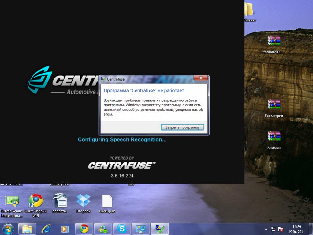 Установил голосовой движок Алёнка. В английской семёрке прошел все настройки, даже получилось управлять виндой. Очень прикольно. Перешел на русский и Центрофуз 3.5 при загрузке вырубается. Что я делаю не так? Help me !!!