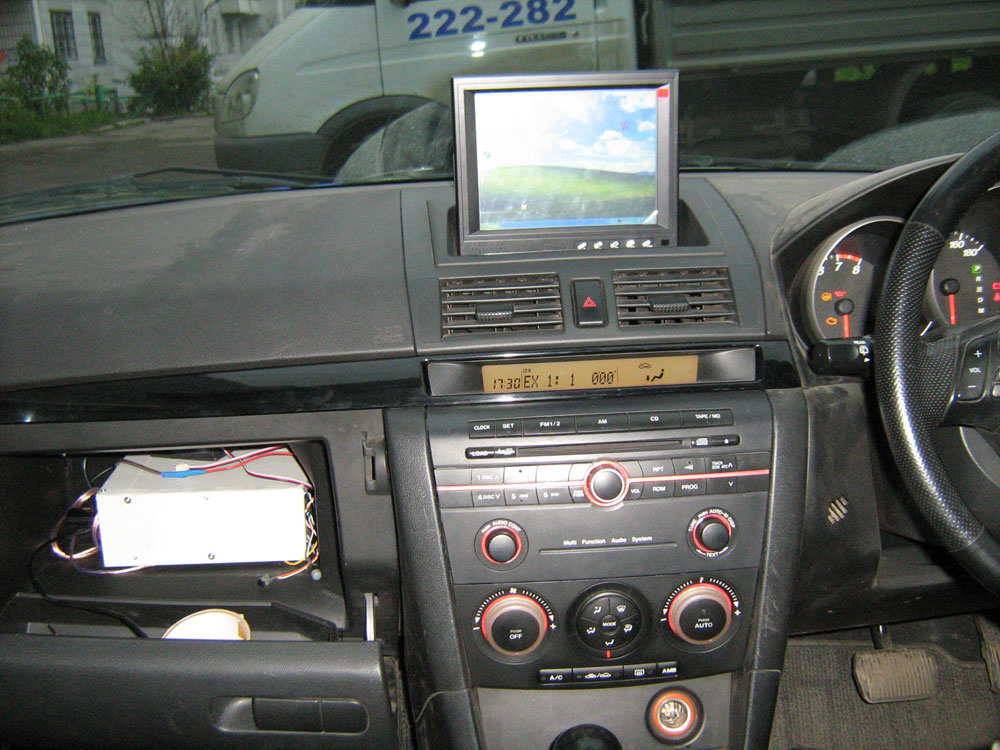 Хоть у меня и Axela (праворукая), данная публикация дала толчек для установки. Пока установлен только компьютер, никакого обвеса в плане TV, Radio, OBD-II и т.д. нету. Звук играет через штатную голову. Вот несколько фото. |