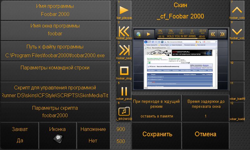 40,"Down" 13,"CTRLEXEC" Удали вот эти строки и тогда заработают кнопки вверх, вниз и ввод в фубаре и в других программах. Но перестанут работать в икаре. А по поводу названия трека из фубара в шапке, в какой папке установлен икар? Если в iCar DS, то обрати внимание на путь к скрипту на соответствующей кнопке. Т.е. задай заново путь к скрипту.