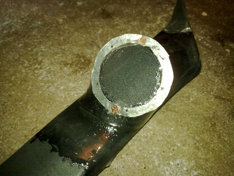 После этого, вырезал из листа жести колечко размером с радиус динамика, прикрепил его к стойке. Тут следует сразу зафиксировать угол и сторону наклона: