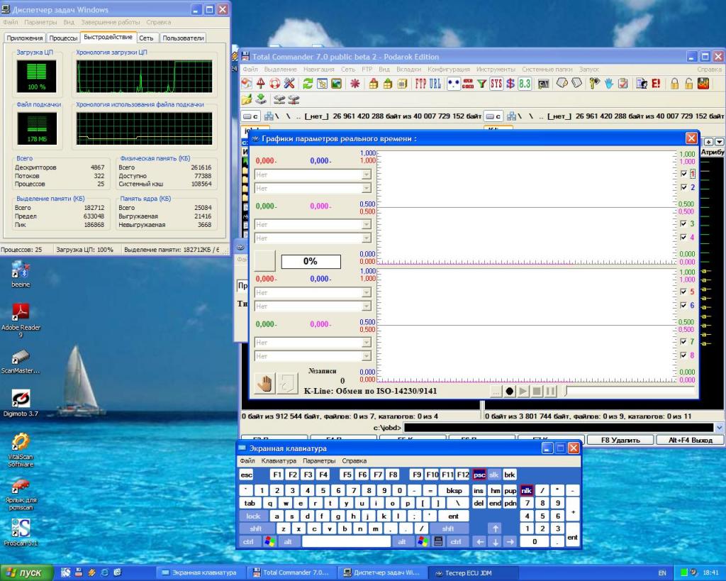 Прихожу в гараж (у меня там стационарный комп стоит). Система свежая (поставил и ничем не захламлял) windows XP sp2. Распаковываю архив Тестер ECU JOBD [2.1.6] в корень диска С.