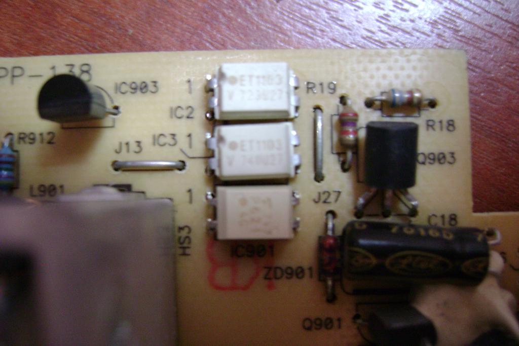 На фотках показаны 2 трансформатора, один из них понятно, но для чего маленький уходит туда... Блок питания состоит из 4 частей, как я понял ВВ часть средняя плата, регулятор кулера маленькая плата припаянная к большой, и большая плата как я понял это все низковольтная часть??? Дайте пожалуйста совет какой нибудь.... Хотел переделать полностью плату под ШИМ 494 но ставит в тупик 3 оптопары на фотках отмечены и маленький транс!!! HELP!!!! |