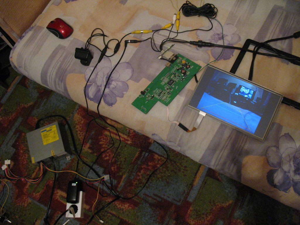 Прицепил на 2х сторонний скотч ТFТ матрицу, и плату контроллера. Питание привода подвижной части, для теста в машине, подключил через адаптер прикуриватель-USB в котором установлен ограничитель по току. В итоге крутится двигатель стал чуть медленнее.