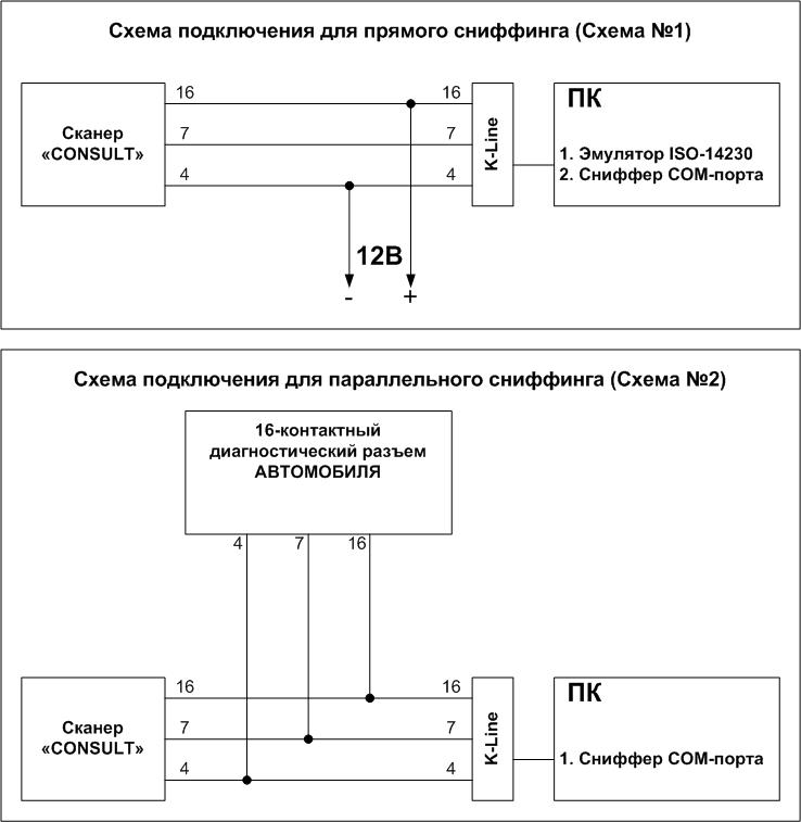 Во второй схеме на компьютере эмулятор тоже должен быть запущен, только с пустым файлом ини - так как должна быть программа, которая откроет ком-порт и будет принимать данные. Сниффер сам по себе данные не принимает! И вообще обо все подробно написано в документе в шапке темы что и как. Документ о получении пидов |