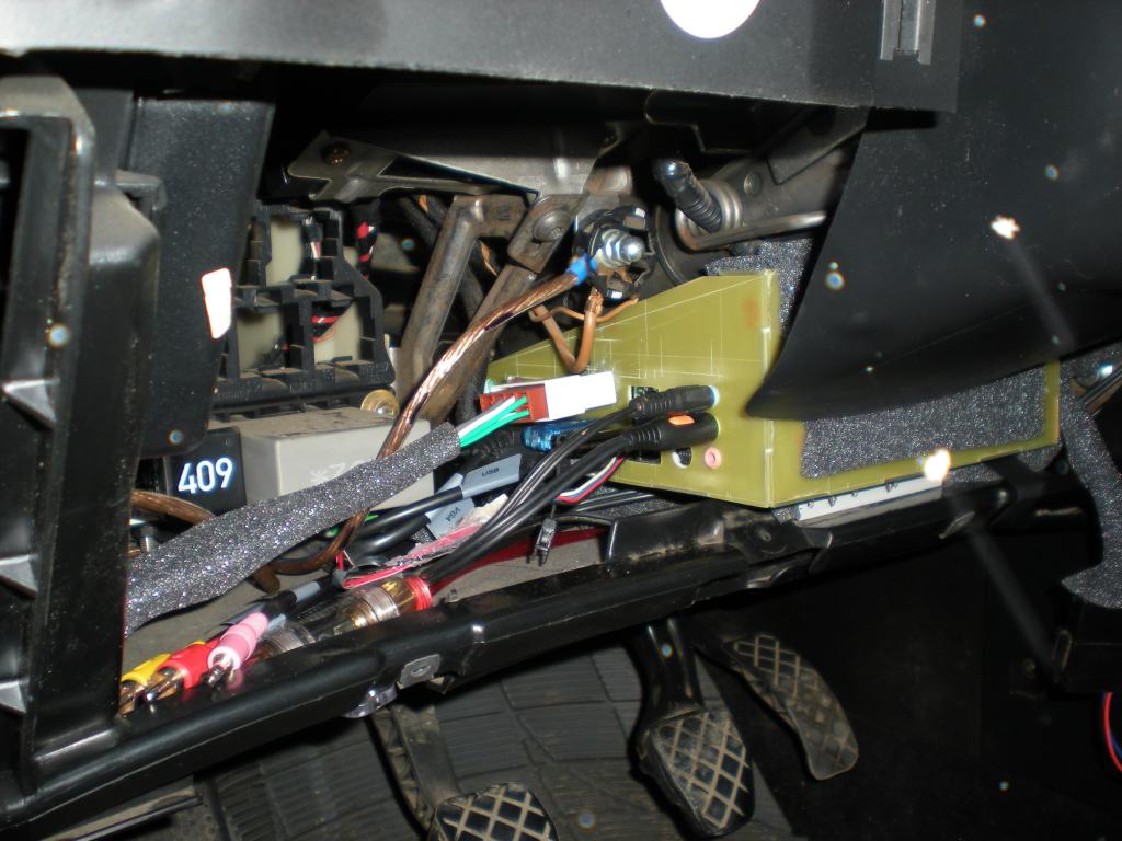 Сама установка в машину, место под рулевой колонкой. Все стало как удто прям там должно и быть, и даже место еще осталось! И кабеля от монитора идут сразу на системный блок ,без удлинителей!
