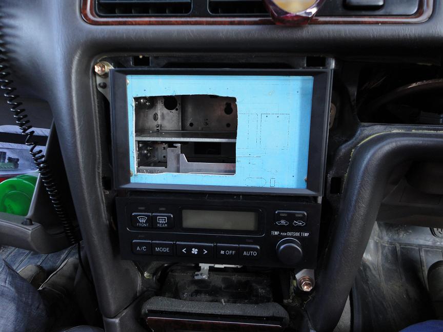 Сначала думал сделать рамку из пластмассы или оргстекла, но потом решив, что проще и красивей будет если корпус монитора выпилить по размеру с магнитолой. |