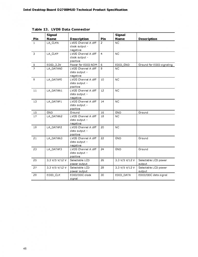- 13) LA_DATAP1 LVDS Channel A diff data output – positive
