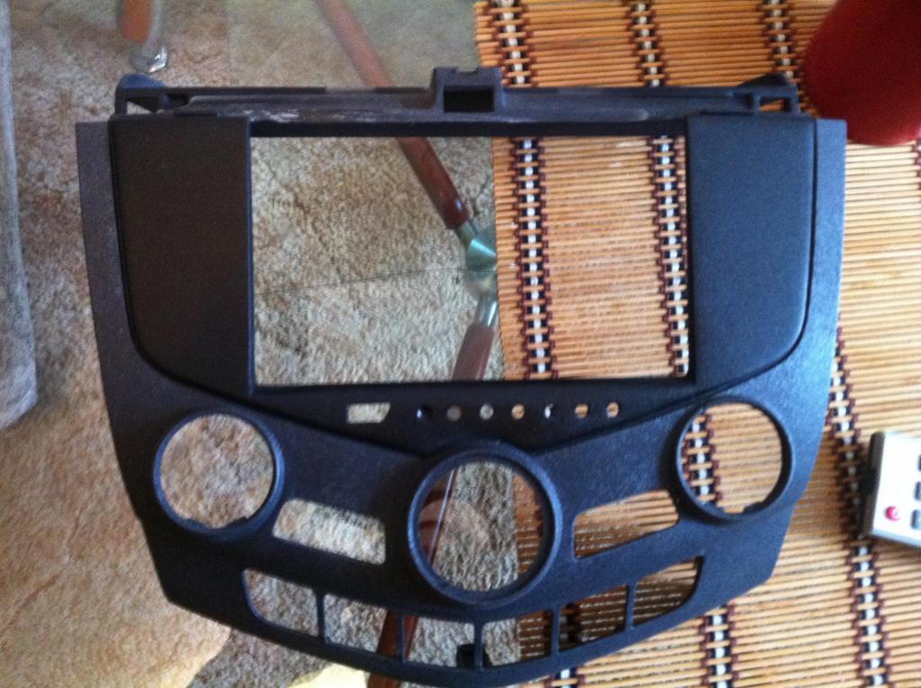 В рамке ГУ было выпилено место под экран с платы был выпаян родной экран и посажен на шлейф, убирать его совсем нельзя т.к. он завязан на управление климатом. Рамка была обтянута колготами ))) Потом ЭДП , стеклоткань, краска, лак и т.д. на фото первый полуфабрикат и собственно оригинал ГУ Honda. Фотографий всего процесса изготовления нет, т.к. потерял телефон на котором все это хранилось