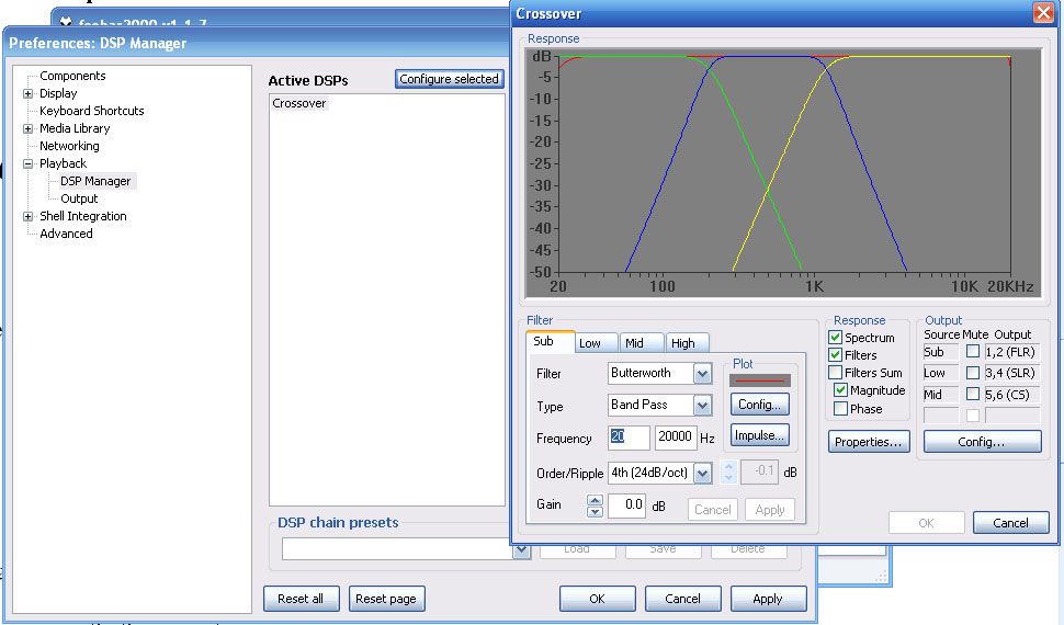 Всем привет. Купил тут себе звук ESI Gigaport HD, всё вроде окей, разрулил поканалку с помощью AudioMulch, всё работает, но одно но, с помощью этих всяких VAC и Mulch появляются всякие щелчки и зависоны. Музыка играет и тут батц, и виснет наглухо. Надоело. Поставил foobar и стал с ним мучаться. В итоге нашел такой модуль: http://sourceforge.net/projects/xover/