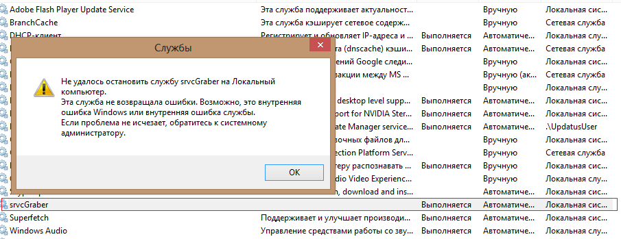 Для этого нужно: 1. PionServices - в свойствах установить совместимость с Win XP сервис пак 3 (как уже писали по Win 7). 2. Запустить install, сервис установится. 3. В службах - "запустить сервис". 4.Перезагрузиться. Сервис запустится, начнется запись. 5. Появится config (начальный). Поставить "Active=1". 6. Перезагрузиться. Сервис запустится, начнется запись. 7. Откорректировать config. 8 Перезагрузиться. У меня не получается остановить, приостановить, перезапустить сервис ни bat файлами, ни в Службах. При попытке это сделать в сужбах выдает ошибку (вложение). На bat файлы вообще не реагирует. Кроме того, как первый раз откорректировал config, стал записывать 600х400х30, хотя в config стояло 1792х1008х27. После повторного перезапуска стал писать с указанными данными. Так же заметил (моя ошибка): выставил BitCount=27, а писалось 30. Посмотрел в Manager - точно для выбранного разрешения - 30, т.е. сервис сам корректирует неправильно выставленный BitCount. |
