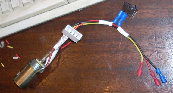 На одном конце компьютерный разъем питания(молекс), на другом прикуриватель и 3 разъема аналогичные установленным в машине. Выключатель разрывает один из плюсов иммитируя ключ.
