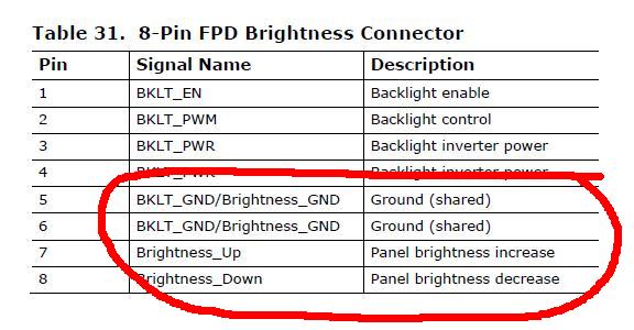 На нем только BKLT_EN работает (тухнет при замыкании на землю). Я так подозреваю, что эта контакты 7 и 8 регулируют шим только на этом разъёме. Тогда надо было с него на шлейф матрицы заводить, что уже не варик делать.