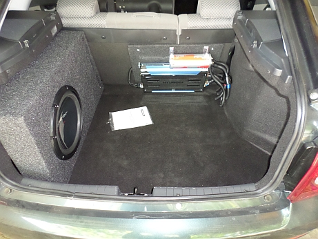 CyberSubaru, да, саб немного торчит. Если бы я лепил сам закрытый короб объемом 35 л (по паспорту), то, думаю, он бы отлично вписался в нишу. Но поленился... Все равно это лучше, чем короб посередине багажника. Для размещения длинных предметов можно сложить заднее сиденье, длины проводов хватит, я все рассчитал.