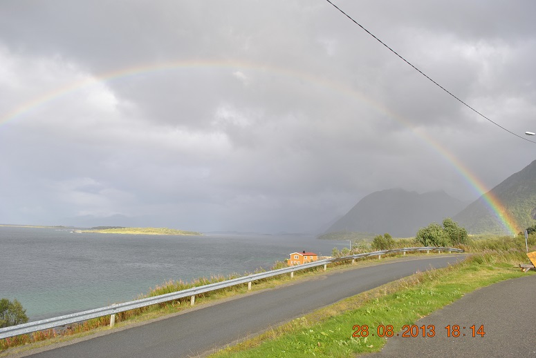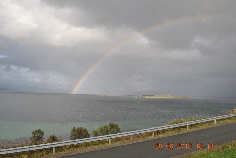 поворачиваю в обратный путь... Прощальный подарок от Норвегии - яркая Радуга - хочется ее именно с большой буквы написать