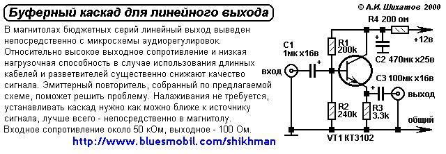 Буферов в данном случае нужно две штуки: по одному на каждый выход предусилителя. С выхода каждого буфера сигнал разделять на два, на входы хертца. Схема буфера (как вариант) в картинко: |