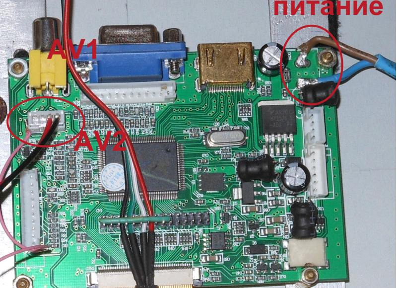 в разъеме av2 на 5 контактную площадку припаял провод, куда подается питание при включении заднего хода, т.е. от лампочки плюс идет и к камере и вот на этот разъем (сейчас понял, что надо было при заказе контроллера написать продавцу и просить с автопереключением). av2 имеет автопереключение, av1 вручную надо включать. Долго только переключается монитор, секунды 3-4 -не меньше