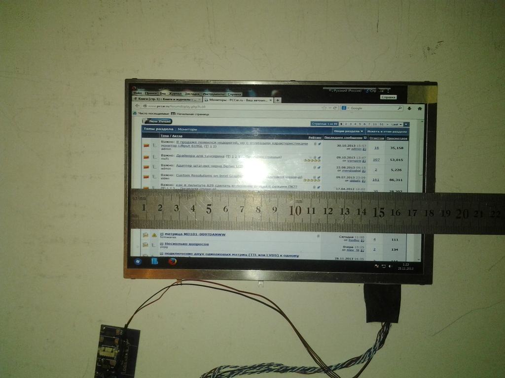 Получил размеры рабочей области тача (который с внешними размерами 199х117мм)- не подходит ,по высоте,на 7 мм. Буду покупать вот эти http://www.alibaba.com/product-gs/14...ch_4_Wire.html Сделал фото видимой части экрана .Получается 179мм х 110мм. Внутренний размер тача по ссылке -185 mm х 112 mm. Внешние габариты матрицы 188мм х122мм Внешние габариты тача 197 mm х 125 mm. Тач по ширине больше матрицы на 9мм - будет критично? контроллер с HDMI+2AV(с переключением на КЗВ) - да,будет он На фото видна вертикальная полоса,шириной в пиксель - это пока при работе с этим контроллером,будет устранено. |