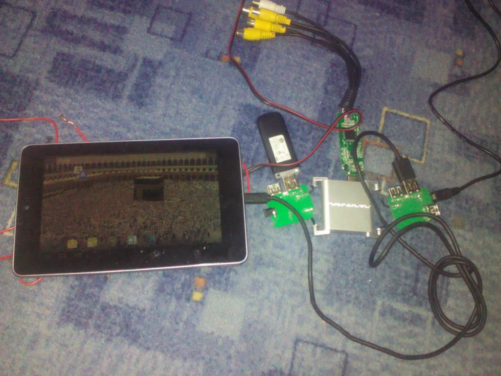 подал питание на мини юсб. шнуром уходит в планшет.