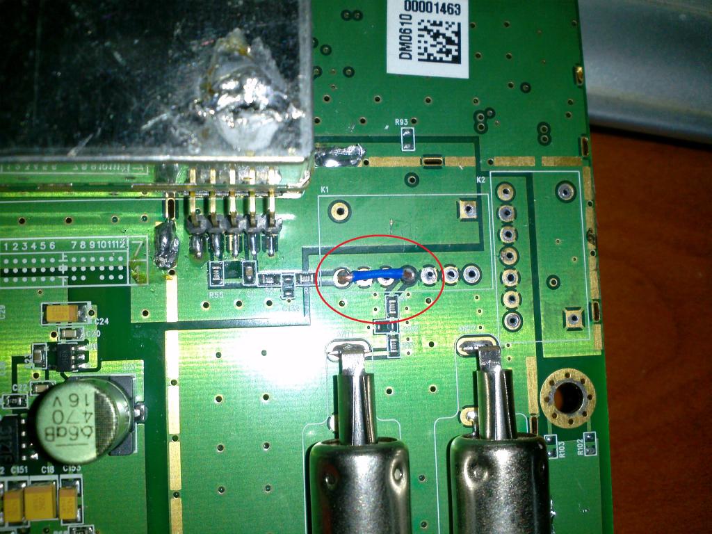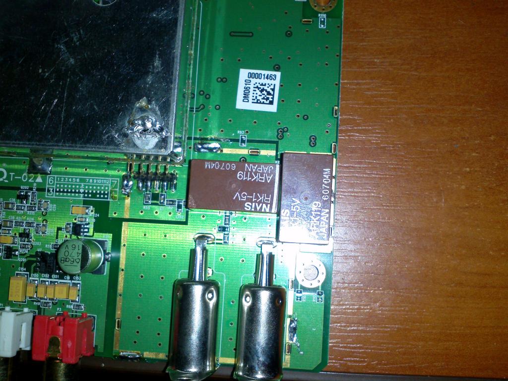 Вскрываем пациента и удаляем экран в районе антенных входов. Вот они два щелкунчика. Оказывается их единственное назначение - это коммутация антенных входа и выхода. Т.к. выход антенны не нужен, удаляем оба реле, и припаиваем одну перемычку, как на фото, подключаем, проверяем - все работает и не щелкает!!! Супер!!! Собираем все до кучи и назад в машину.