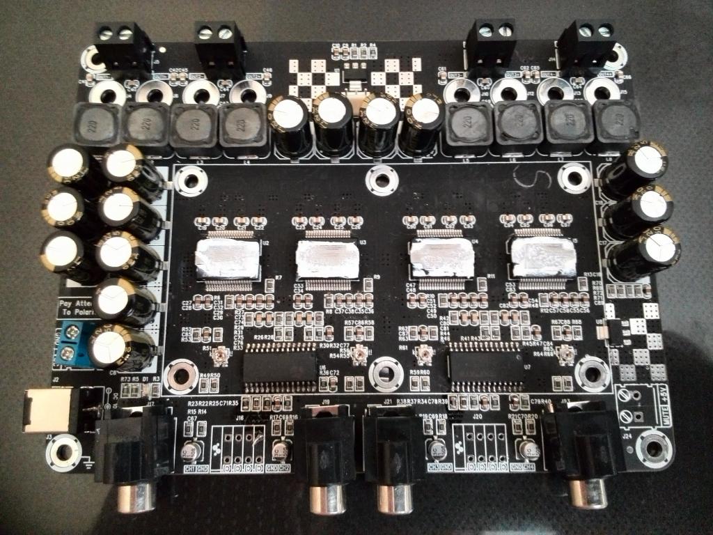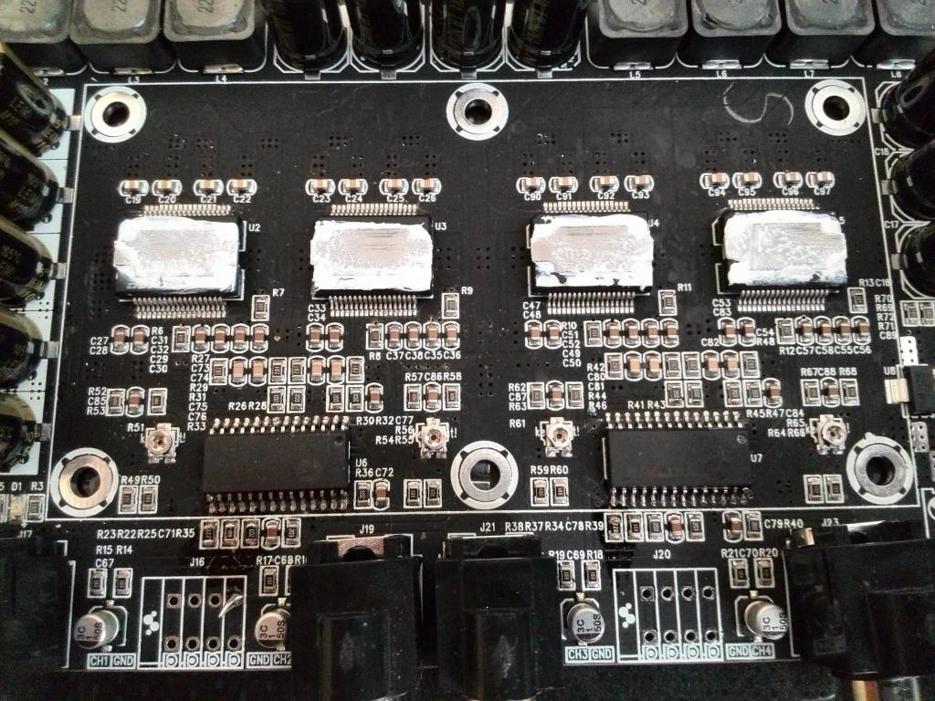 А может такое быть что контакт PWRDN висит в воздухе ? Схема усилка сделана по даташиту (на мой взгляд). Я не нашел куда идет этот контакт. Там стоит tc 2001, а не 2000.
