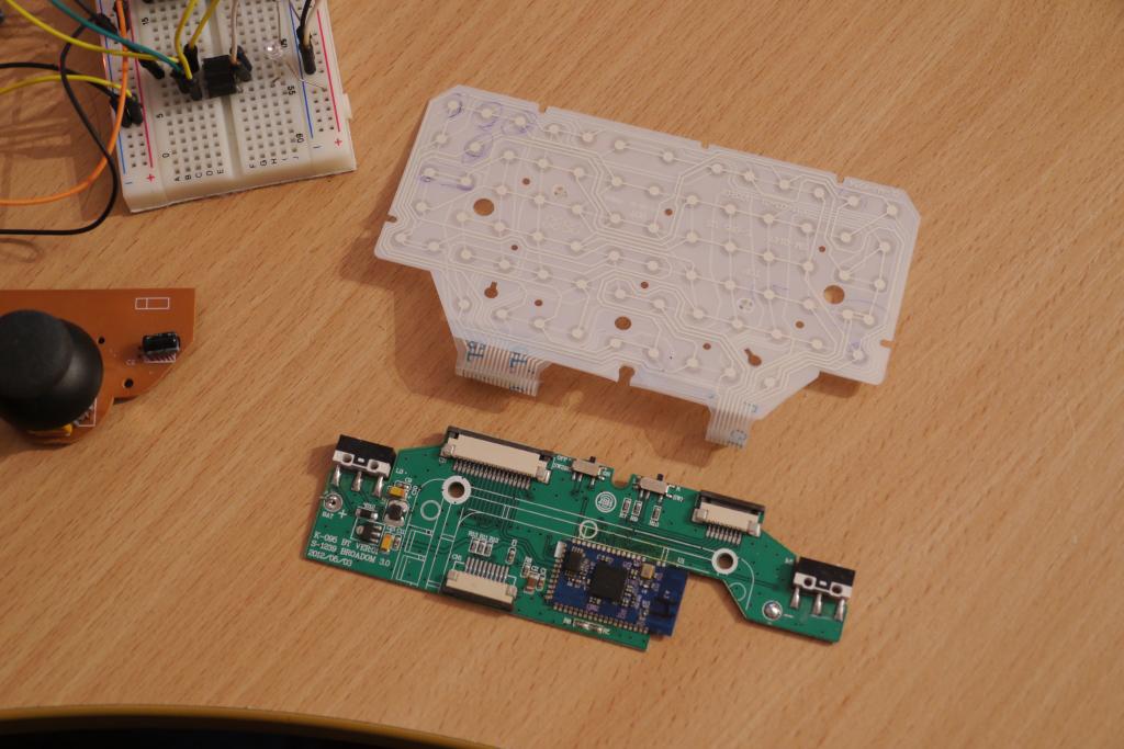 Решил дербанить геймпад от ТВ-приставки. Хотелось подцепить его по BlueTooth. Для этих целей приобрёл на дербан BlueTooth клавиатуру. Отдельно HID модуль не хотелось ждать месяц из Китая. Описание используемого в ней модуля не нашёл и пришлось подключатся к плате клавиатуры.