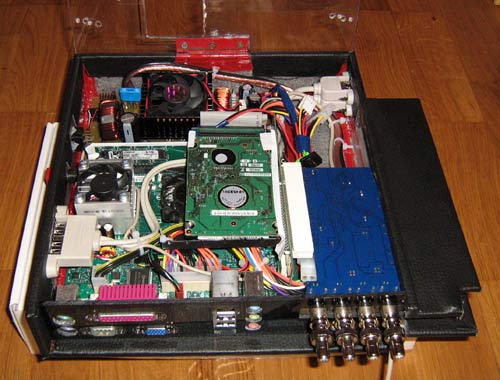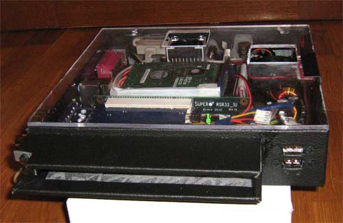 Я подключил DVD-RW для того, чтобы установить винду и драйвера, в остальном конфигурация была мобильная. Монитор использовал Prology PCM 700, тот что был куплен первым. Установка винды прошла успешно, драйвера установил, кроме этого установил необходимый системный софт, чтобы потом не заниматься этим, все кроме фронтендов, с ними потом. Корпус пришлось немного видеоизменить, потому что я купил PCI Riser в слот, чтобы можно было ставить PCI карты, типа тюнеров и систем наблюдения. В целом, ширина корпуса выросла на 5см, из которые можно будет при желании срезать 2см. Карты ставил разные по размерам, подходят все что у меня были. Сделал вывод, что размеры достаточны для любого PCI устройства. Решил заранее продумать все возможные подключения, вывел дополнительно 4 наружних USB порта, 2 кнопки (одна Power, вторая для переключения режимов работы блока питания SL). Кроме этого, я вывел кнопки управления включением компьютера на кабель от удлиннителя PS/2, разрезав его на 2 части. короткую прицепил к разьему, который втыкается в мамку, длинная пойдет по салону в приборную панель, где будут кнопки располагаться. Соединяются они вместе в районе компа, т.е. разьем там один и тот же - это же удлиннитель. Чуть позже размещу фотографии. Сейчас вот думаю, чем обшить корпус. Либо серым карпетом, либо пленкой, которой оклеивают мебель, либо может серым или черным кожзамом. Последний использовать сложнее всего, потому что нужно подбирать правильный клей, но зато такой корпус будет лучше чиститься. До установки компа в машину счет пошел на дни. Хочу пока, не торопясь, укрепить углы корпуса металлическими деталями в местах соединений, чтобы корпус можно было пиннать (все равно этим кончится). Главное - защитить выпирающие части решетками. План дальнейший. 1. Собрать корпус, чтобы был жестким, обшить - завершить. 2. Установить в машину, провести провод питания и подключить компьютер у монитору и начать обкатывать. 3. Подключить GPS навинатор и программу навигации. 4. Опробовать подключние видеокамер, выбрать работающий вариант для заднего и переднего вида, возможно получится организовать наблюдение за машиной удаленно. Заодно с платой и камерами определиться. 5. Прикрутить одну из камер спереди, попробовать софт для распознавания авто номеров. 6. Установить BT и WiFi таким образом, чтобы был наилучшмй прием, найти место в машине. Подобрать устройство BT и WiFi с внешними антеннами. |